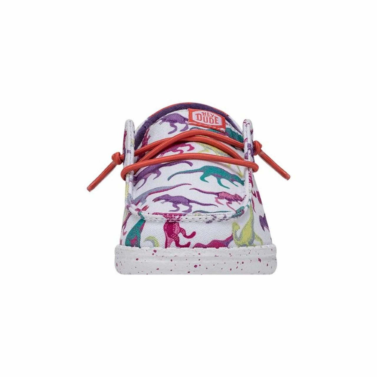 Take her HEYDUDE™ shoes to a new age of cool. The Wendy Toddler Dino is all cushy comfort with a textile upper. A removable foam insole gives her roaring support. The easy-on laces and lightweight outsole means free-roaming fun. Topped off with T. Rex, Steggy and Bronto, too, her inner Apex is here to play. Slip-on Printed textile upper Elastic laces Lightweight outsole Easy-on system Travel ready Removable foam insole Imported